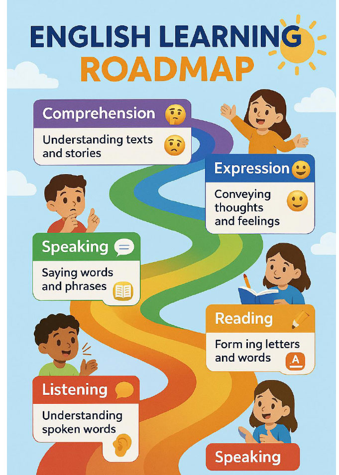 | Level 1 – Language & Joy | 6 Months (2 Terms) | Grades 1–2 | Phonics, rhythm, and early vocabulary | Confident beginner speaker & listener |